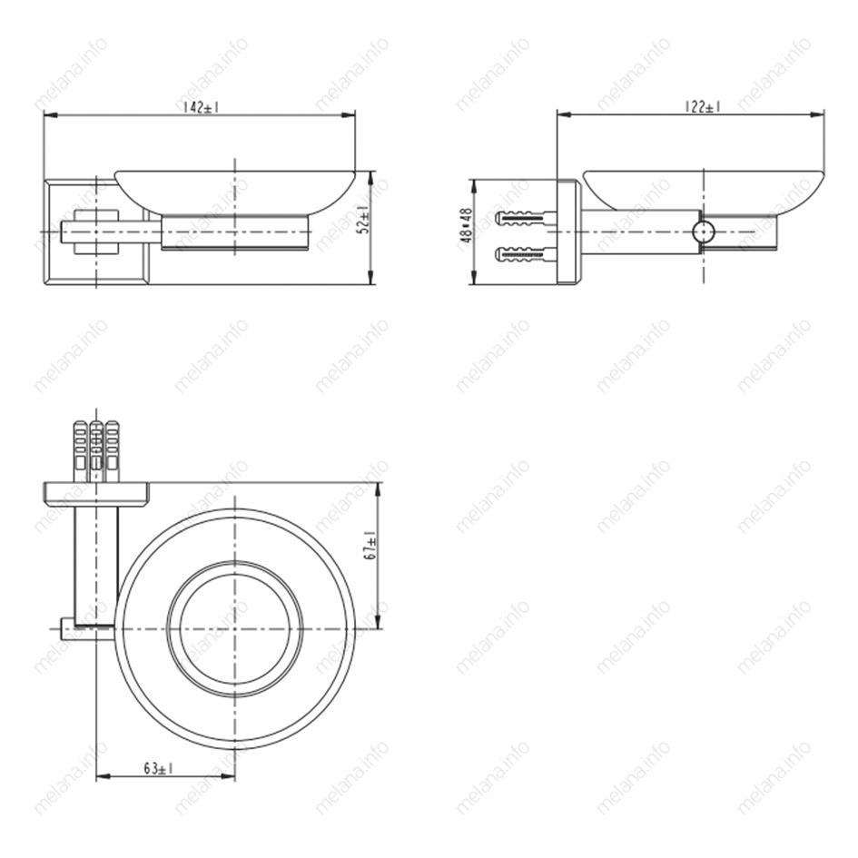 Стеклянная часть мыльницы выполнена из прочного матового стекла толщиной 4мм, которое фиксируется в держателе уплотнительным кольцом.