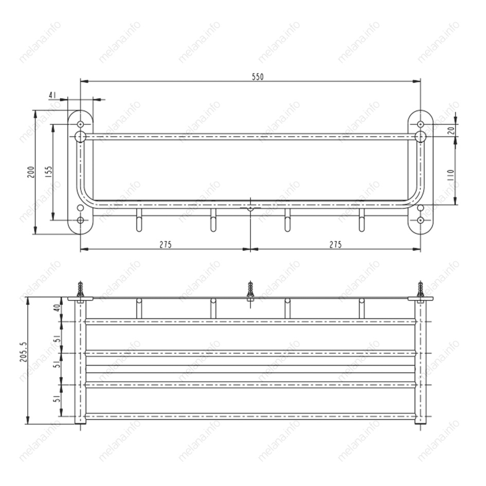 Полка для полотенец выполнена из нержавеющей стали, которая, в отличии от пластика, устойчива к коррозии, плесени и грибку.