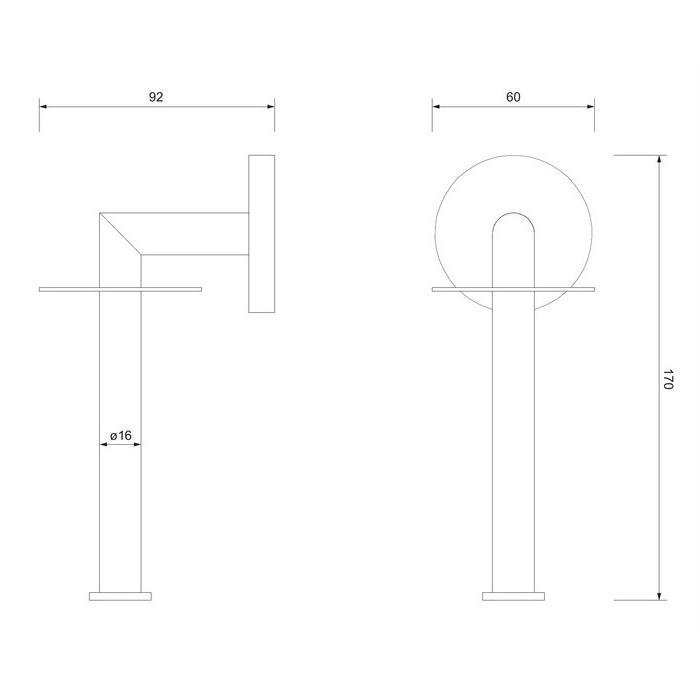 - изготовлена из латуни; - ширина: 6 см; - высота: 17 см; - расстояние от стены: 9,2 см.