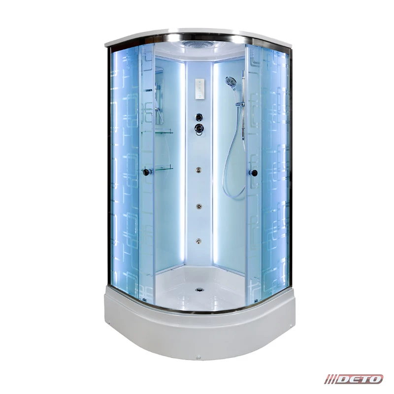 Стильная душевая кабина AvaCan EM2780 LED с гидромассажем сочетает в себе высокую функциональность, практичность и надежность. Для изготовления применяют безопасное закаленное стекло толщиной 5 мм, надежно фиксируемое алюминиевым профилем. Цвет профиля хром. В комплекте сифон, зеркало, сенсорный пульт управления, душевой гарнитур, полочки, гидромассажные форсунки, led-подсветка, смеситель, переключатель режимов, тропический (верхний) душ, вентиляция, радио.