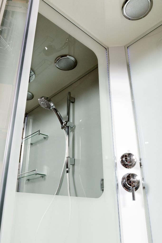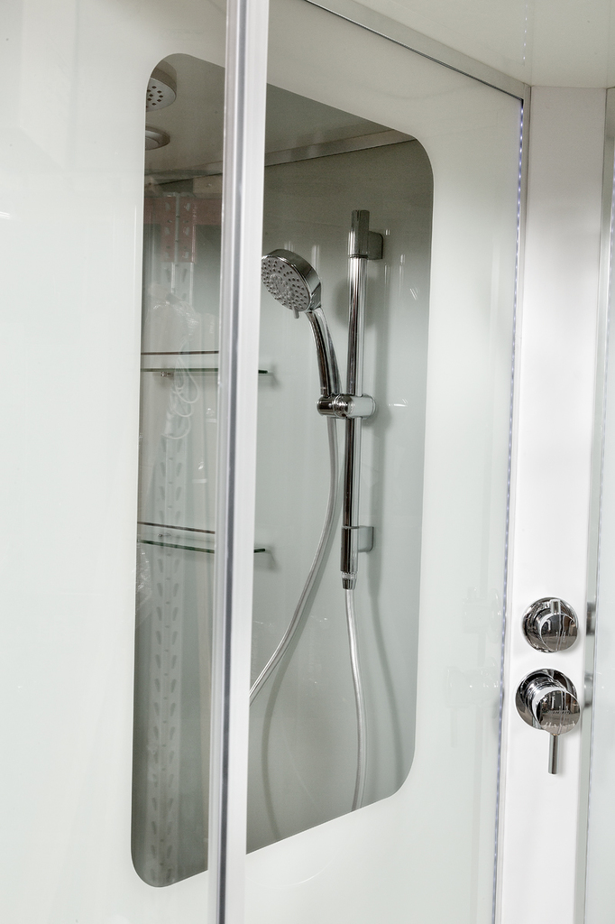 Комплектация: • Латунный смеситель с керамическими картриджами и резьбовыми соединениями • 100% акриловый поддон с дренажными отводами высотой 15 см, усиленный металлическим каркасом с антискользящим покрытием • Прозрачное безопасное закаленное сверхпрочное стекло толщиной 6 мм и антикальциевой обработкой • Душевая штанга с регулировкой лейки по высоте и ручная лейка с силиконовыми форсунками с функцией переключения режимов • Шланг 1,5 метра Anti-Twist (не скручивается). Поворот шланга 360°