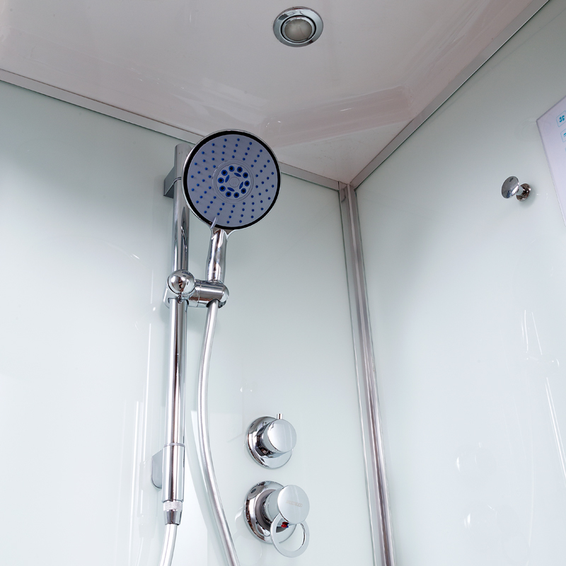 Комплектация: • Латунный смеситель с керамическими картриджами и резьбовыми соединениями • 100% акриловый поддон с дренажными отводами, высотой 50 см со съемным экраном усиленный металлическим каркасом с антискользящим покрытием • Матовое безопасное закаленное сверхпрочное стекло толщиной 4 мм с антикальциевой обработкой • Душевая штанга с регулировкой лейки по высоте и ручная лейка с силиконовыми форсунками диаметром 140 мм с функцией переключения режимов • Шланг 1,5 метра Anti-Twist (не скручивается). Поворот шланга 360°