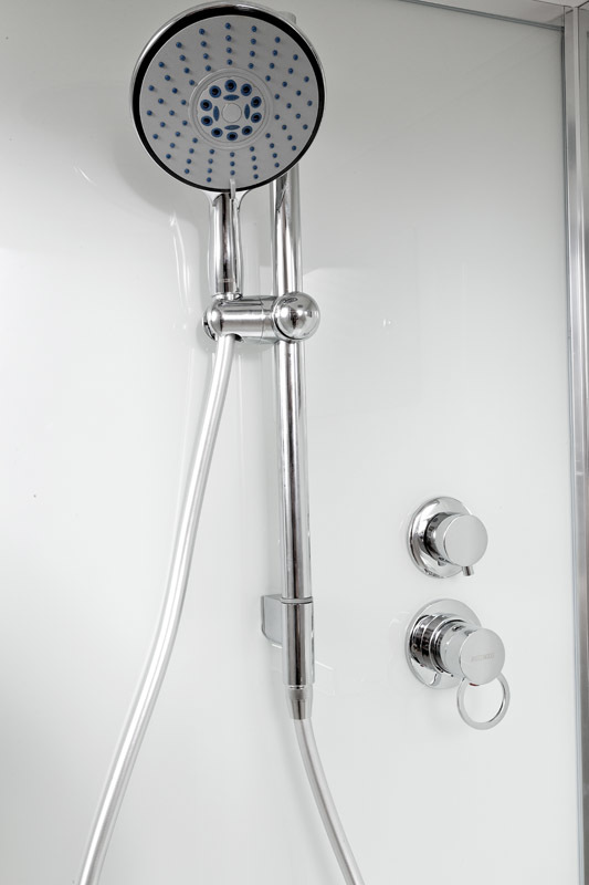 Комплектация: • Латунный смеситель с керамическими картриджами и резьбовыми соединениями • 100% акриловый поддон с дренажными отводами, высотой 27 см со съемным экраном усиленный металлическим каркасом