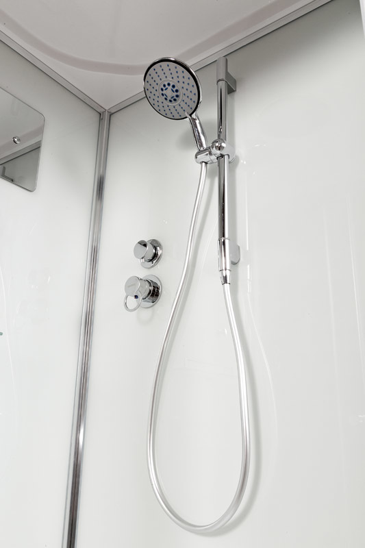 Комплектация: • Латунный смеситель с керамическими картриджами и резьбовыми соединениями • 100% акриловый поддон с дренажными отводами, высотой 27 см со съемным экраном усиленный металлическим каркасом с антискользящим покрытием • Матовое безопасное закаленное сверхпрочное стекло толщиной 4 мм и антикальциевой обработкой • Душевая штанга с регулировкой лейки по высоте и ручная лейка с силиконовыми форсунками диаметром 140 мм с функцией переключения режимов • Шланг 1,5 метра Anti-Twist (не скручивается). Поворот шланга 360°