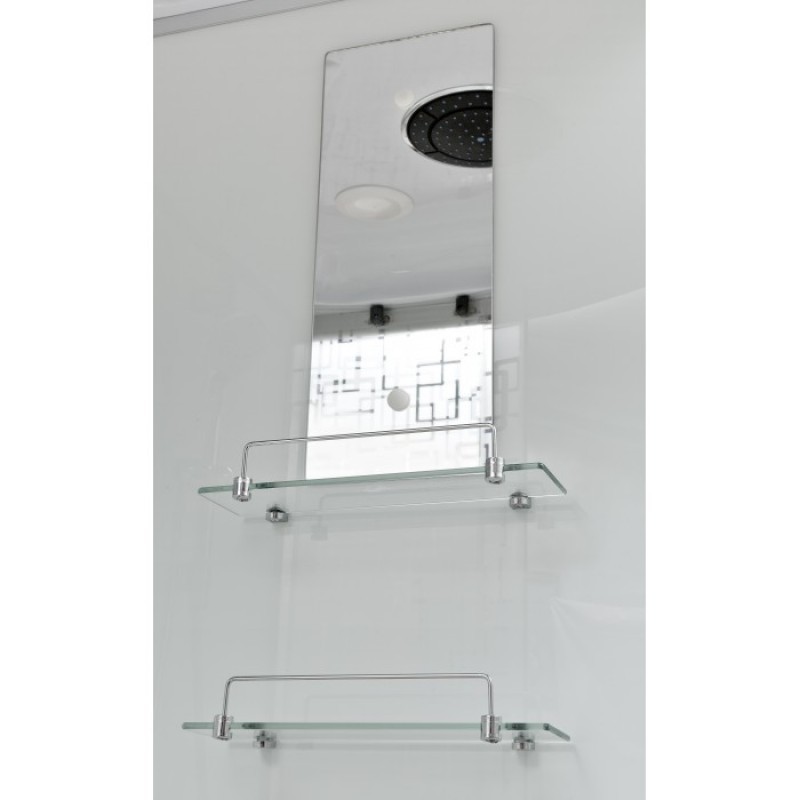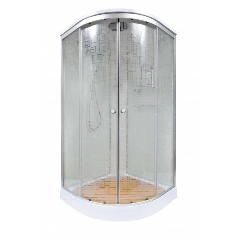 Комплектация: • Латунный смеситель с керамическими картриджами и резьбовыми соединениями • 100% акриловый поддон с дренажными отводами высотой 15 см, усиленный металлическим каркасом с вставкой из антибактериального полимера • Матовое безопасное закаленное сверхпрочное стекло толщиной 5 мм с рисунком и антикальциевой обработкой • Душевая штанга с регулировкой лейки по высоте и ручная лейка с силиконовыми форсунками • Шланг 1,5 метра Anti-Twist (не скручивается). Поворот шланга 360°