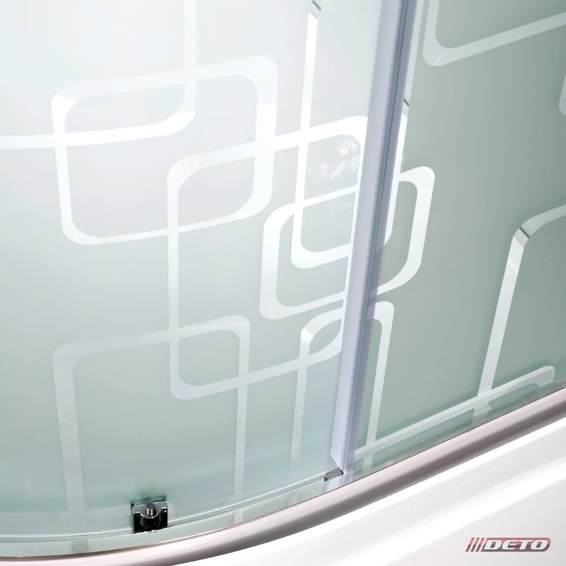 Комплектация: • Латунный смеситель с керамическими картриджами и резьбовыми соединениями • 100% акриловый поддон с дренажными отводами высотой 15 см, усиленный металлическим каркасом с вставкой из антибактериального полимера • Матовое безопасное закаленное сверхпрочное стекло толщиной 5 мм с рисунком и антикальциевой обработкой • Душевая штанга с регулировкой лейки по высоте и ручная лейка с силиконовыми форсунками • Шланг 1,5 метра Anti-Twist (не скручивается). Поворот шланга 360°