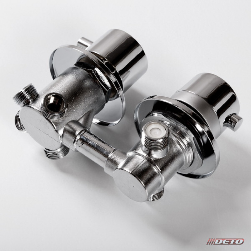 Характеристики: • Ограничитель температуры воды на 38°C • В комплект входят обратные клапаны и грязевые фильтры • Стандарт подводки 1/2