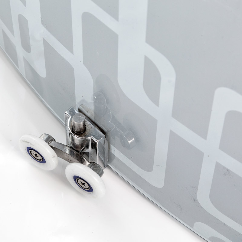 Комплектация: • Латунный смеситель с керамическими картриджами и резьбовыми соединениями • 100% акриловый поддон с дренажными отводами, высотой 27 см со съемным экраном усиленный металлическим каркасом с антискользящим покрытием • Матовое безопасное закаленное сверхпрочное стекло толщиной 5 мм с рисунком и антикальциевой обработкой • Душевая штанга с регулировкой лейки по высоте и ручная лейка с силиконовыми форсунками с функцией переключения режимов • Шланг 1,5 метра Anti-Twist (не скручивается). Поворот шланга 360°