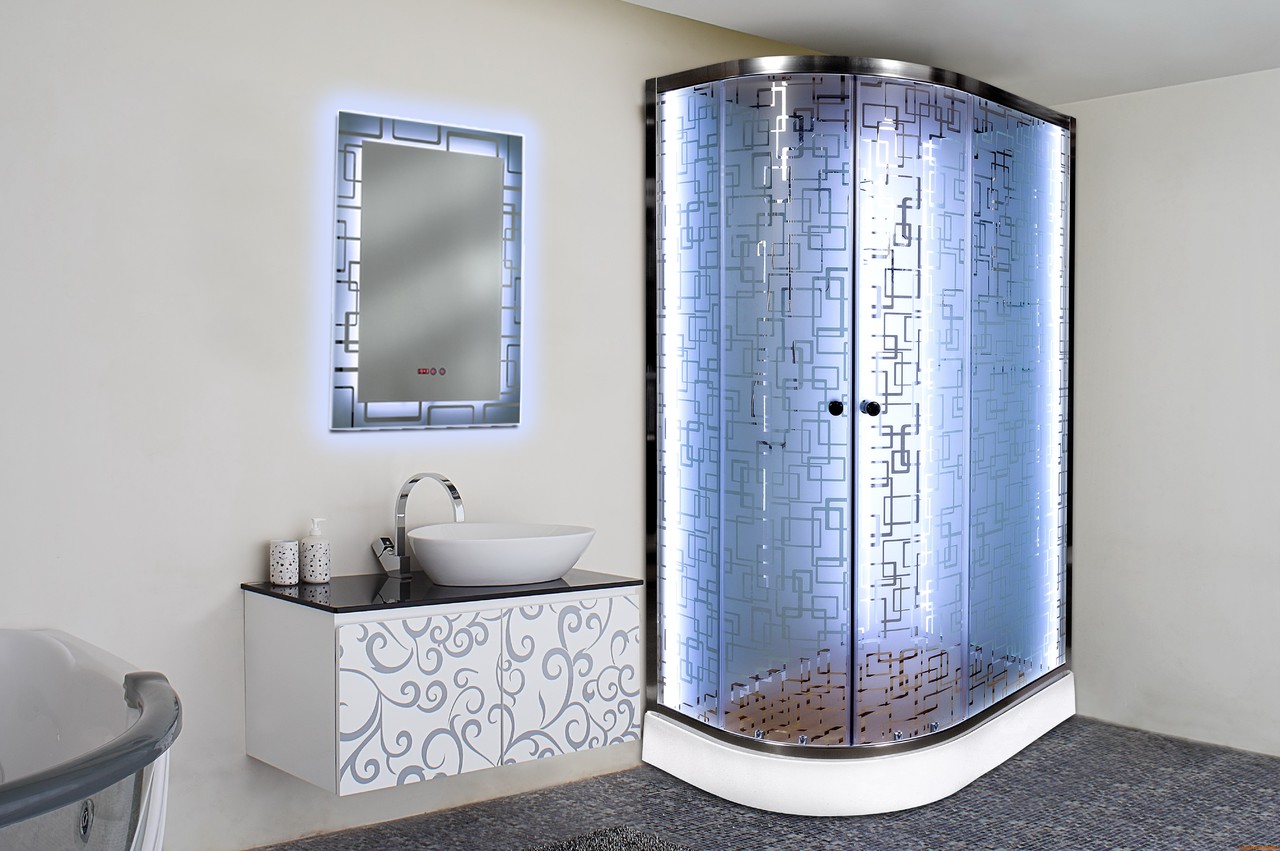Комплектация: • Латунный смеситель с керамическими картриджами и резьбовыми соединениями • 100% акриловый поддон с дренажными отводами высотой 50 см со съемным экраном усиленный металлическим каркасом с антискользящим покрытием • Матовое безопасное закаленное сверхпрочное стекло толщиной 5 мм с рисунком и антикальциевой обработкой • Душевая штанга с регулировкой лейки по высоте и ручная лейка с силиконовыми форсунками • Шланг 1,5 метра Anti-Twist (не скручивается). Поворот шланга 360°