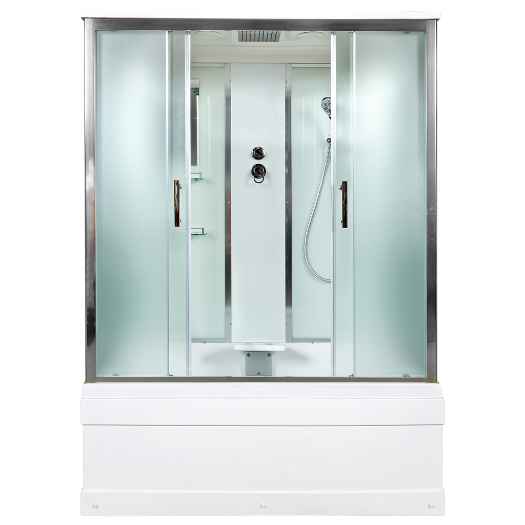 Комплектация: • Латунный смеситель с керамическими картриджами и резьбовыми соединениями • 100% акриловый поддон с дренажными отводами, высотой 50 см со съемным экраном усиленный металлическим каркасом с антискользящим покрытием • Матовое безопасное закаленное сверхпрочное стекло толщиной 5 мм с рисунком и антикальциевой обработкой • Душевая штанга с регулировкой лейки по высоте и ручная лейка с силиконовыми форсунками • Шланг 1,5 метра Anti-Twist (не скручивается). Поворот шланга 360°