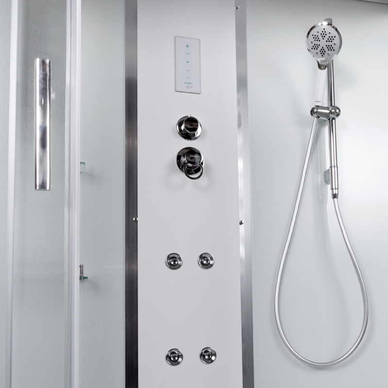 Характеристики: • Напряжение питания парогенератора 220V-240V • Давление воды 0.1-0.4 Мра • Частота тока 50Hz/60Hz • Мощность парогенератора 2.5KW-3.5KW • Парогенератор оснащен фито-контейнером для сухого ароматизатора • Датчик температуры и нагрев пара до 60° • Сенсорный пульт управления