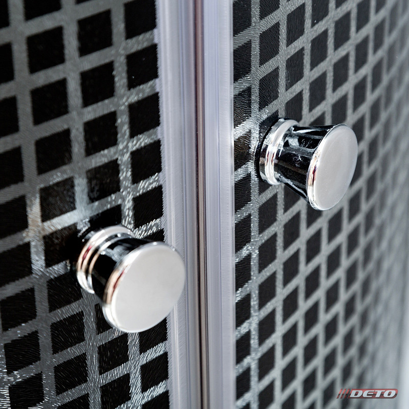 Комплектация: — вертикальный гидромассаж - 3 форсунки; —латунный смеситель с керамическими картриджами и резьбовыми соединениями; сверхпрочное стекло толщиной 4 мм с рисунком и антикальциевой обработкой; —хромированные ручки; —монтаж без силикона; —резьбовые соединения всех шлангов; —усиленный акриловый поддон с дренажными отводами; —нескользящее покрытие поддона; —бесшумные двойные ролики (верхние и нижние) в пластиковом антикоррозийном кожухе; —душевая лейка на штанге с силиконовыми форсунками; —шланг усиленный хромированный с системой ANTI-TWIST (не скручивается). Вращение шланга на 360⁰; —ручной душ оснащен системой Easy Clean; —сифон с гидрозатвором