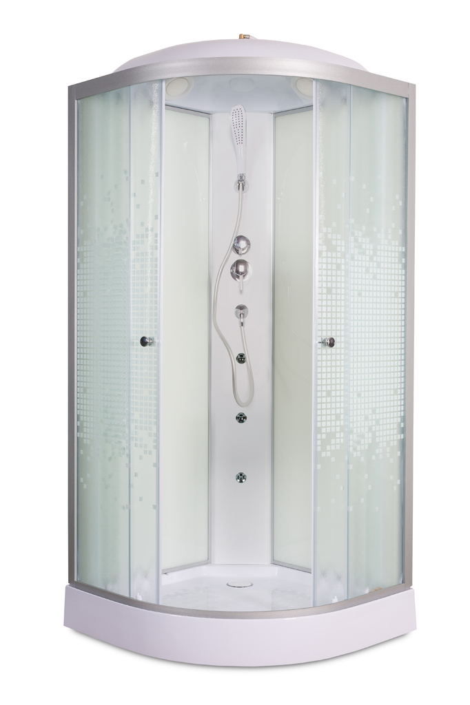 Комплектация: • Латунный смеситель с керамическими картриджами и резьбовыми соединениями • 100% акриловый поддон с дренажными отводами высотой 15 см, усиленный металлическим • Матовое безопасное закаленное сверхпрочное стекло толщиной 4 мм с рисунком и антикальциевой обработкой • Душевая лейка на штанге с силиконовыми форсунками • Шланг 1,5 метра Anti-Twist (не скручивается). Поворот шланга 360°