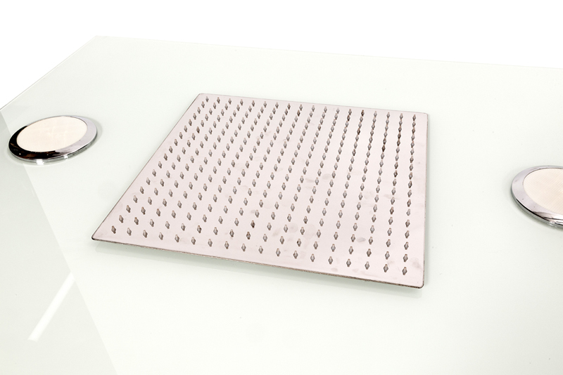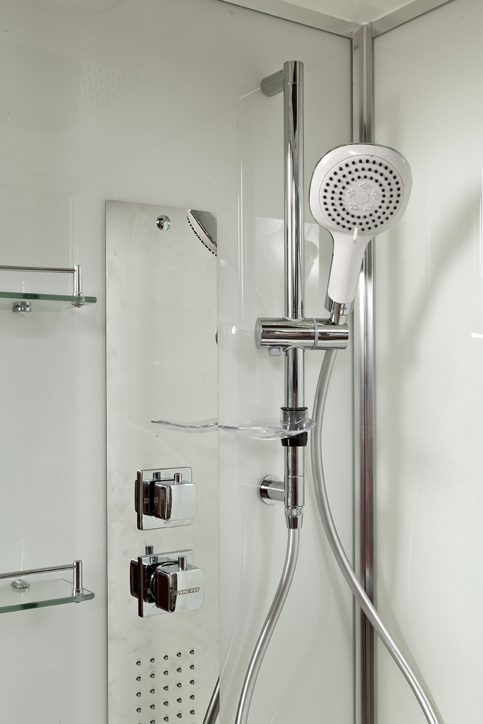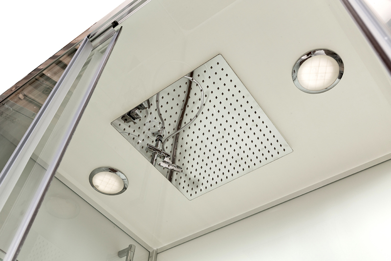 Комплектация: • Закаленные стекла толщиной 6 мм • Стеклянная крыша TRIPLEX толщиной 6 мм • Универсальное открывание дверей (возможность установки при монтаже как правого, так и левого открывания) • Два металлических ролика расположенных с внешней стороны двери (имеющие увеличенный срок службы благодаря отсутствию контакта с водой) • Ручная лейка с силиконовыми самоочищающимися джетами и мыльницей на штанге • Гидромассажная панель с силиконовыми самоочищающимися джетами • Акриловый поддон высотой 15 см, усиленный металлическим каркасом, • выдерживающий нагрузку до 320 кг • Антискользящая вставка из антибактериального полимера, имитирующего дерево (включена в стоимость душевой кабины) • SUPER БОЛЬШОЙ металлический тропический душ из нержавеющей стали (40 см *40 см) с силиконовыми самоочищающимися джетами • Термостатический трехрежимный смеситель с керамическими кран-буксами • Две полки • Два вентиляционных отверстия в крыше