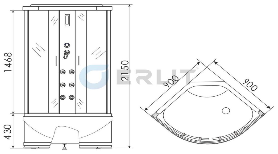 Российская душевая кабина Erlit Eclipse ER5709TP-C24 с гидромассажем 90х90 - цена 62010 руб. Оформить заказ и купить душевую кабину Erlit Eclipse ER5709TP-C24 с гидромассажем 90х90 в Москве в нашем интернет магазине можно по тел 8 (919) 991-95-00 или добавив товар в корзину.