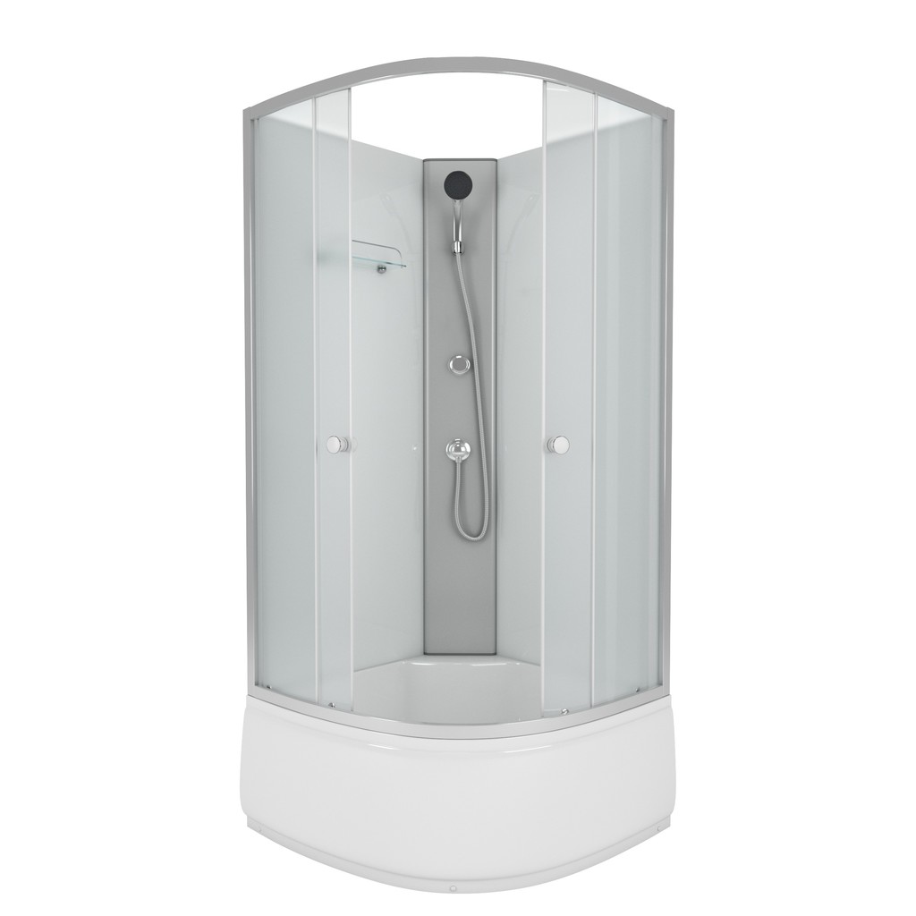 Комплектация: ручной душ, смеситель 2-ух режимный, сифон с гофрой, съемный экран, одинарные ролики, сиденье влито в поддон, полочка.