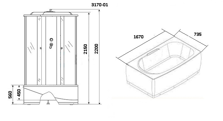 Комплектация: смеситель 4-х режимный, удобная полочка, съемный экран, пульт управления, зеркало, подсветка, тропический душ, ручной душ, зеркало, гидромассаж из 6-ти форсунок, сиденье влито в поддон, налив в поддон.