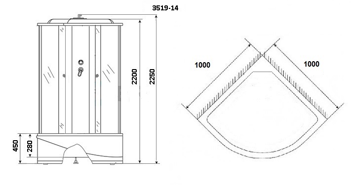 Комплектация:смеситель 3-х режимный, удобная полочка, пульт управления, зеркало, подсветка, тропический душ, ручной душ, зеркало, гидромассаж из 6-ти форсунок.