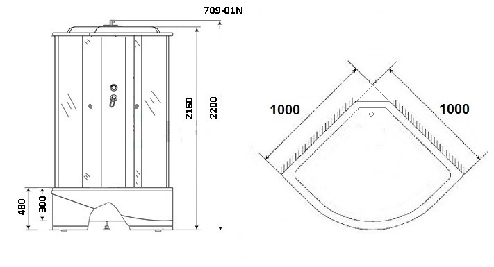 Комплектация: смеситель 3-х режимный, сифон с гофрой, удобная полочка, съемный экран, пульт управления, зеркало, подсветка, тропический душ, ручной душ, зеркало, гидромассаж из 6-ти форсунок, сиденье влито в поддон.