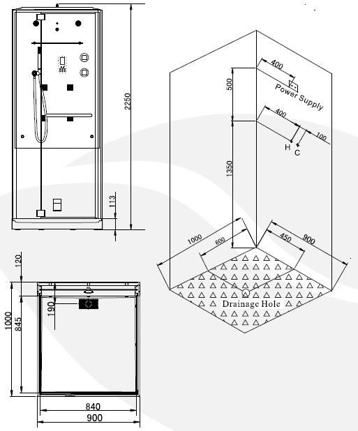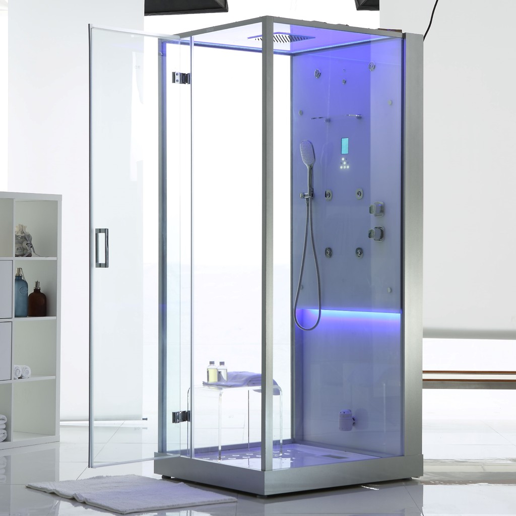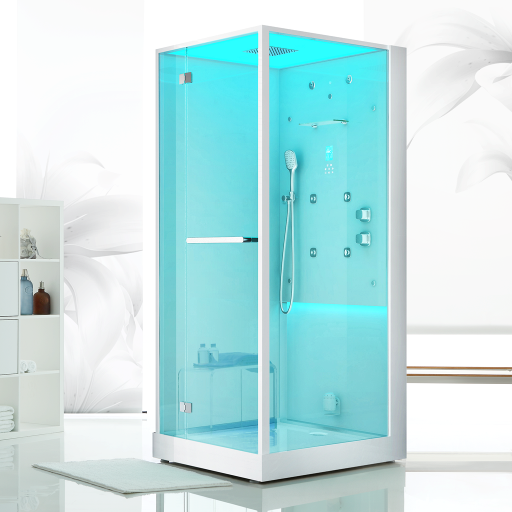 Комплектация: •Душевая кабина С ПАРОМ, с гидромассажем. • Панель управления S6100 с подсветкой. • Озонатор. • FM радио + BLUETOOTH. • Парогенератор с таймером работы и автоматическим поддержанием температуры. • Термостат. • Низкий прямоугольный поддон из 100% акрила с армировкой, высота - 160 мм. • Каркас из нерж. стали с регулируемыми ножками. • Цельный легкосъемный экран из 100% акрила. • Задняя стенка из закаленного армированного взрывобезопасного стекла с форсунками. • Крыша из закаленного стекла с LED подсветкой. • Безсиликоновая сборка. • Дверь и боковые стенки - закаленное стекло 6 мм, ручка из нерж. стали. • Усиленные хромированные петли из латуни. • Алюминиевый усиленный профиль. • Ультра-тонкий верхний душ из нерж. стали с силиконовыми форсунками антикальций. • Сифон с грязезащитной сеточкой. • Душевая лейка - шланг 1,5 м. • Смеситель из латуни с 3 режимами. • Ручки смесителя из латуни с хромировкой. • Вытяжка, 2 аудиодинамика. • Акриловая полочка.