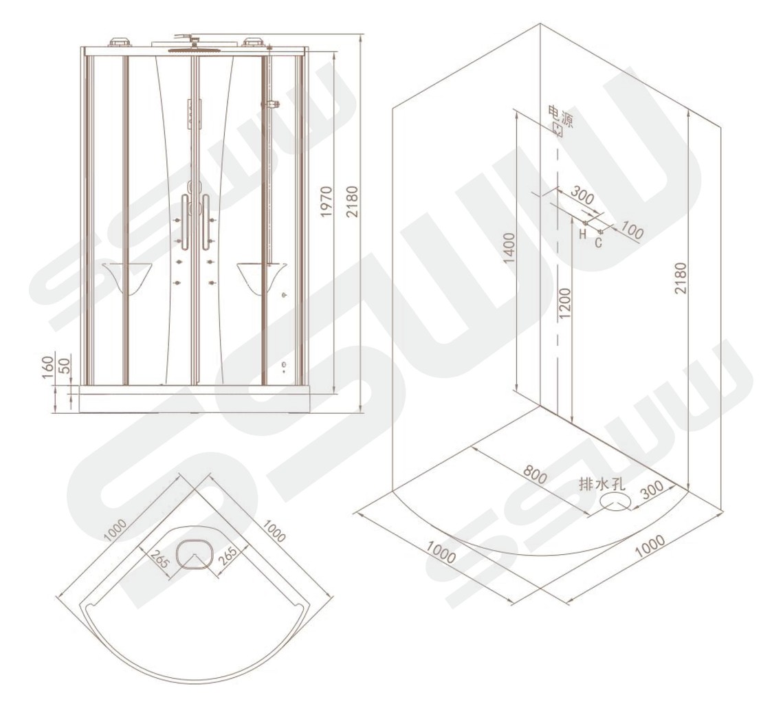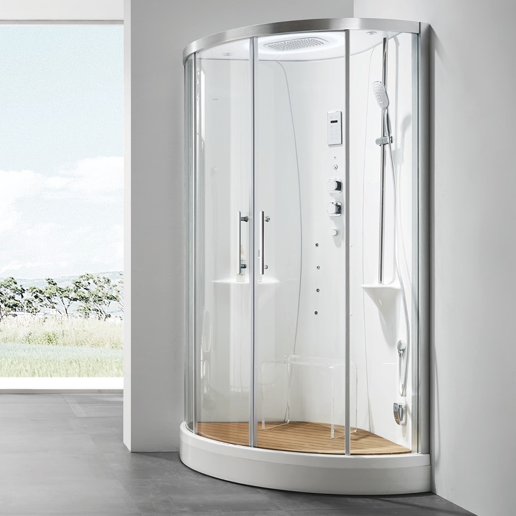 Комплектация: •Душевая кабина С ПАРОМ, с гидромассажем. • Панель управления S163BTC с подсветкой. • Озонатор. • FM радио + BLUETOOTH + телефон. • Парогенератор с таймером работы и автоматическим поддержанием температуры. • Термостат. • Низкий полукруглый поддон из 100% акрила с армировкой. • Каркас из нерж. стали с регулируемыми ножками. • Легкосъемный экран из 100% акрила. • Задняя стенка из 100% акрила с армировкой и алюминиевыми форсунками. • Крыша из закаленного стекла с LED RGB подсветкой овальной формы. • Вертикальная двойная ленточная LED RGB подсветка по задней стенке. • Безсиликоновая сборка. • Дверь и боковые стенки - закаленное стекло 6 мм, ручка из нерж. стали. • Усиленные двойные бесшумные хромированные ролики. • Алюминиевый усиленный профиль (цвет по заказу - белый/глянцевое серебро). • Ультра-тонкий верхний душ из нерж. стали с силиконовыми форсунками антикальций. • Сифон с грязезащитной сеточкой. • Душевая лейка - шланг 1,5 м. • Смеситель из латуни с 3 режимами. • Ручки смесителя из латуни с хромировкой. • Вытяжка, 2 аудиодинамика. • Акриловая прозрачная табуретка. • Две полки, интегрированные в заднюю стенку. • Опция - трап из натурального дерева.
