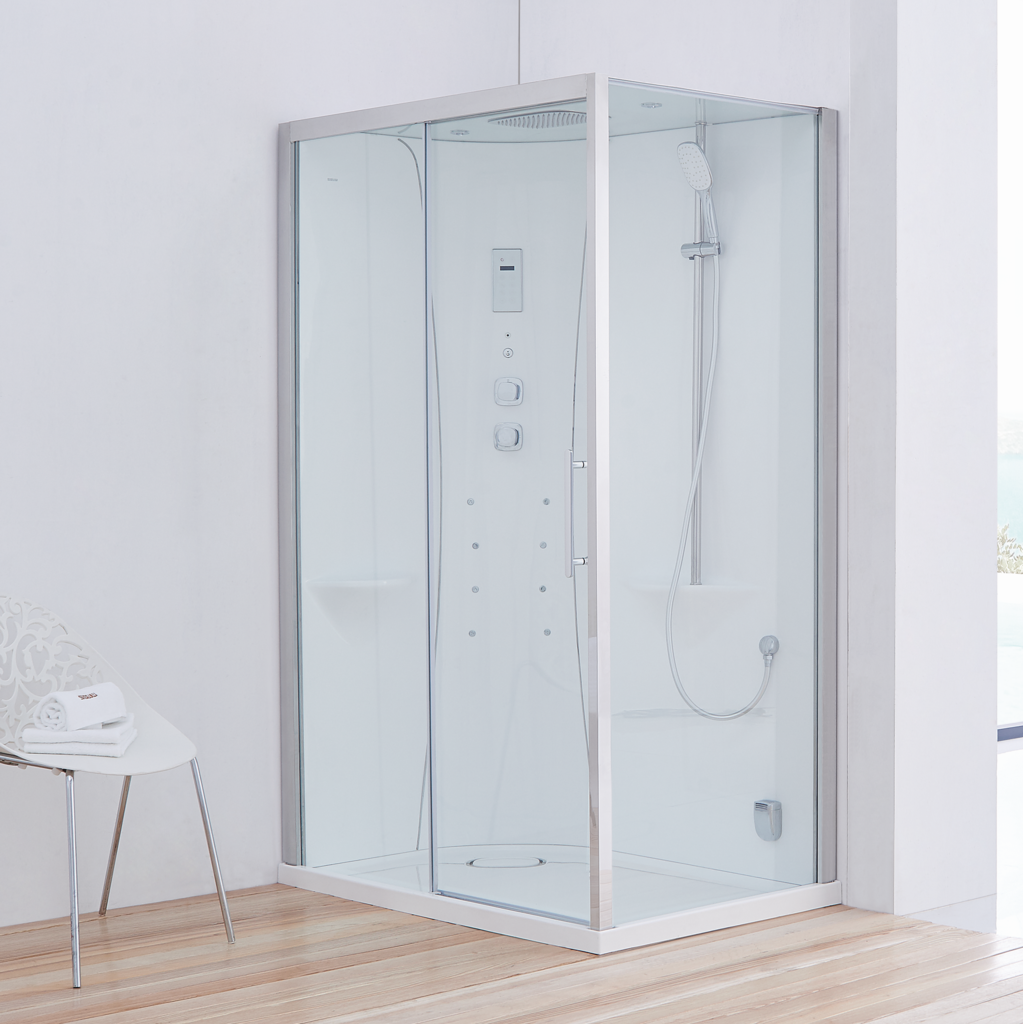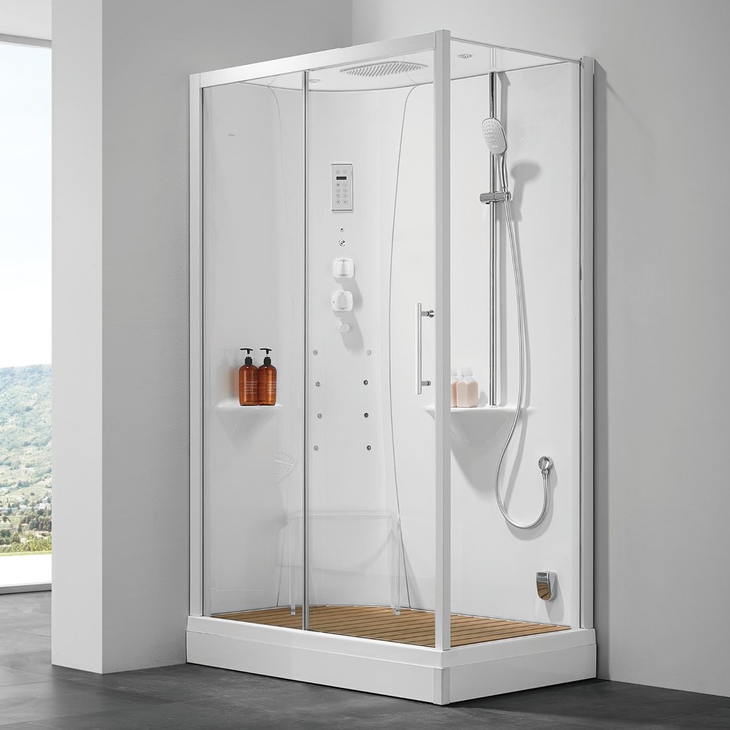 Комплектация: •Душевая кабина БЕЗ ПАРА, с гидромассажем. • Панель управления S167BTT. • FM радио + BLUETOOTH. • Низкий прямоугольный поддон из 100% акрила с армировкой. • Каркас из нерж. стали с регулируемыми ножками. • Легкосъемный экран из 100% акрила. • Задняя стенка из 100% акрила с армировкой и алюминиевыми форсунками. • Крыша из закаленного стекла с LED RGB подсветкой овальной формы. • Вертикальная двойная ленточная LED RGB подсветка по задней стенке. • Безсиликоновая сборка. • Дверь и боковые стенки - закаленное стекло 6 мм, ручка из нерж. стали. • Усиленные двойные бесшумные хромированные ролики. • Алюминиевый усиленный профиль (цвет по заказу - белый/глянцевое серебро). • Ультра-тонкий верхний душ из нерж. стали с силиконовыми форсунками антикальций. • Сифон с грязезащитной сеточкой. • Душевая лейка - шланг 1,5 м. • Смеситель из латуни с 3 режимами. • Ручки смесителя из латуни с хромировкой. • Вытяжка, 2 аудиодинамика. • Акриловая прозрачная табуретка. • Две полки, интегрированные в заднюю стенку. • Опция - трап из натурального дерева.