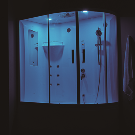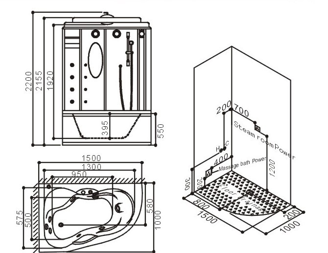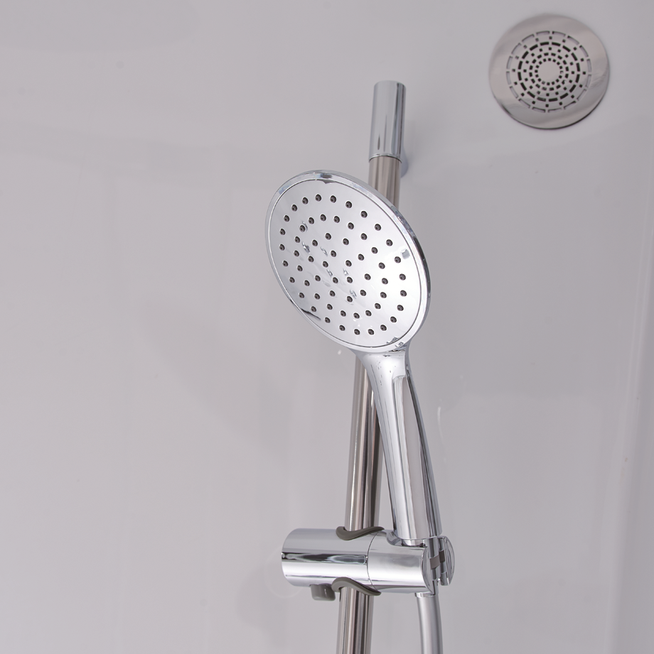 Комплектация: •Душевая кабина С ПАРОМ L/R, с гидромассажем. • Панель управления S163BTC. • Озонатор. • FM радио + BLUETOOTH. • Прямоугольная глубокая ванна из 100% акрила с армировкой, без гидромассажа. • Каркас из нерж. стали с регулируемыми ножками. • Задняя цельная панель из 100% акрила с полной армировкой и форсунками. • Крыша из 100% акрила с LED подсветкой. • Интегрированная в заднюю панель полка с ограждением, зеркало. • Безсиликоновая сборка. • Закаленное стекло 6 мм, ручки из нерж. стали. • Профиль из алюминия с порошковой окраской белого цвета. • Верхний душ с силиконовыми форсунками антикальций. • Сифон с грязезащитной сеточкой. • Душевая лейка - шланг 1,5 м. • Смеситель из латуни с 3 режимами. • Ручки смесителя из латуни с хромировкой. • Усиленные двойные бесшумные ролики из металла. • Вытяжка, 2 аудиодинамика.