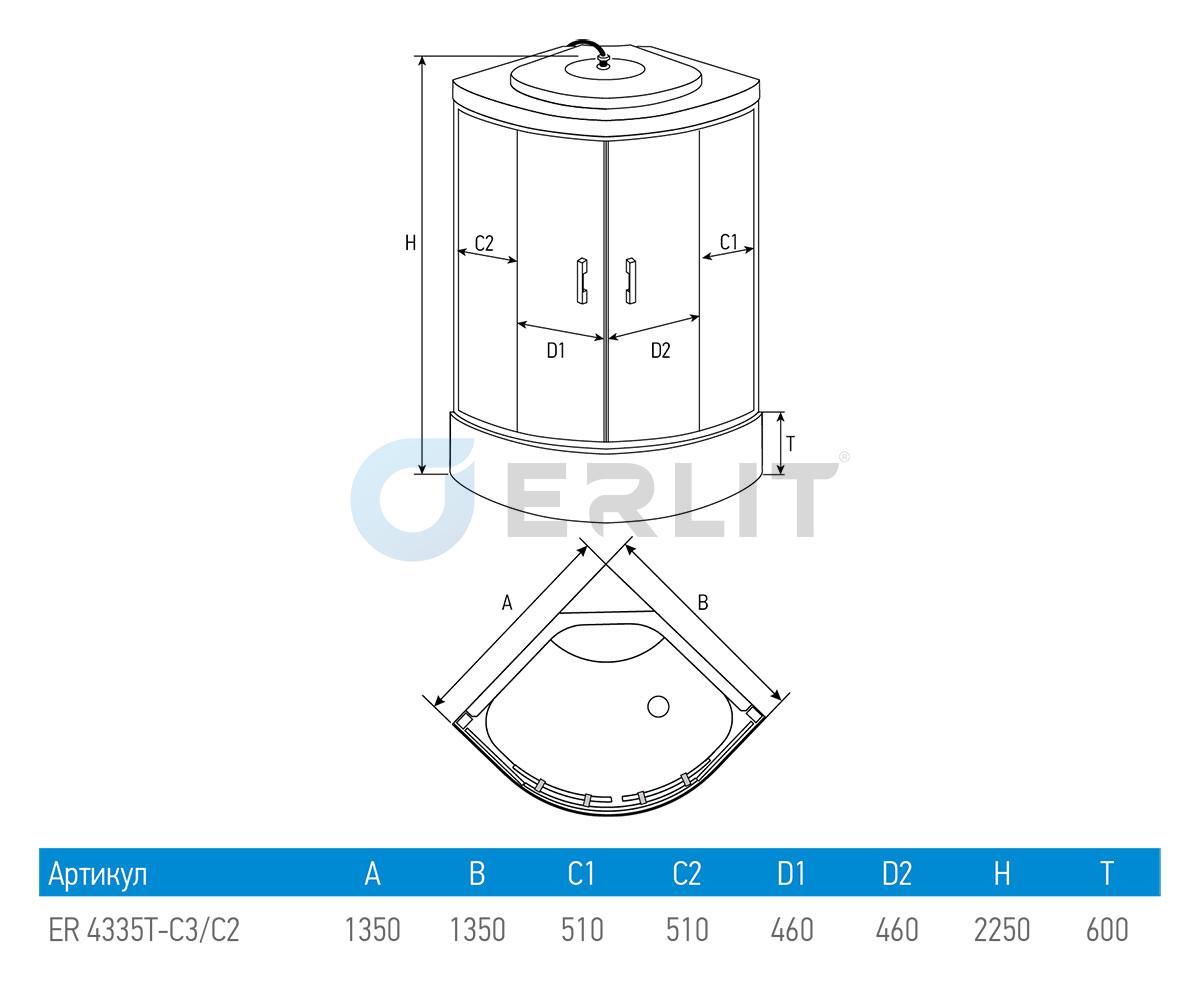 Российская душевая кабина Erlit Comfort ER4335T-W3 с гидромассажем 135х135 - цена 101586 руб. Оформить заказ и купить душевую кабину Erlit Comfort ER4335T-W3 с гидромассажем 135х135 в Москве в нашем интернет магазине можно по тел 8 (919) 991-95-00 или добавив товар в корзину.