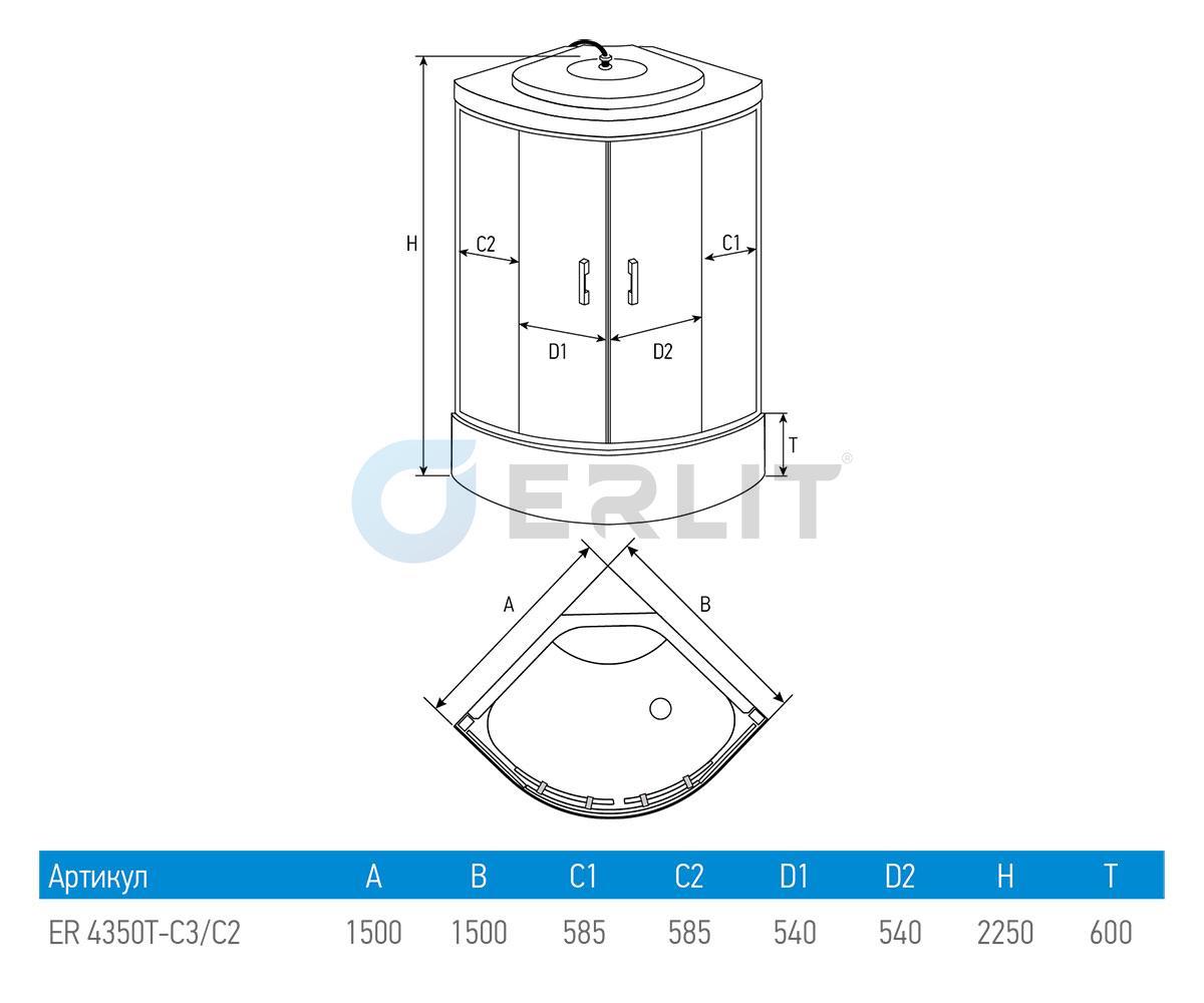 Российская душевая кабина Erlit Comfort ER4350T-W3 с гидромассажем 150х150 - цена 108544 руб. Оформить заказ и купить душевую кабину Erlit Comfort ER4350T-W3 с гидромассажем 150х150 в Москве в нашем интернет магазине можно по тел 8 (919) 991-95-00 или добавив товар в корзину.