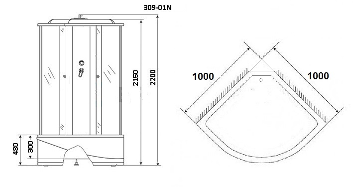 Комплектация: смеситель 3-х режимный, удобная полочка, съемный экран, пульт управления, зеркало, подсветка, тропический душ, ручной душ, зеркало, гидромассаж из 6-ти форсунок, сиденье влито в поддон.