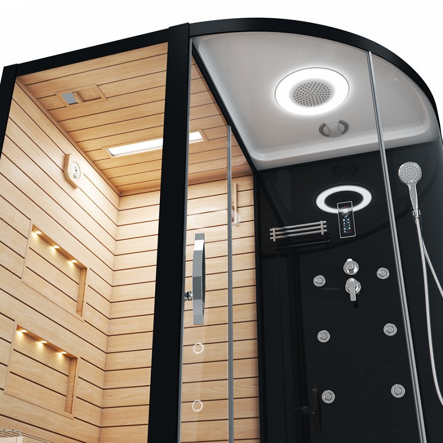 Душевая кабина Tiko Solli с гидромассажем, турецкой баней, финской сауной 180 см х110 см черная - T00201L
