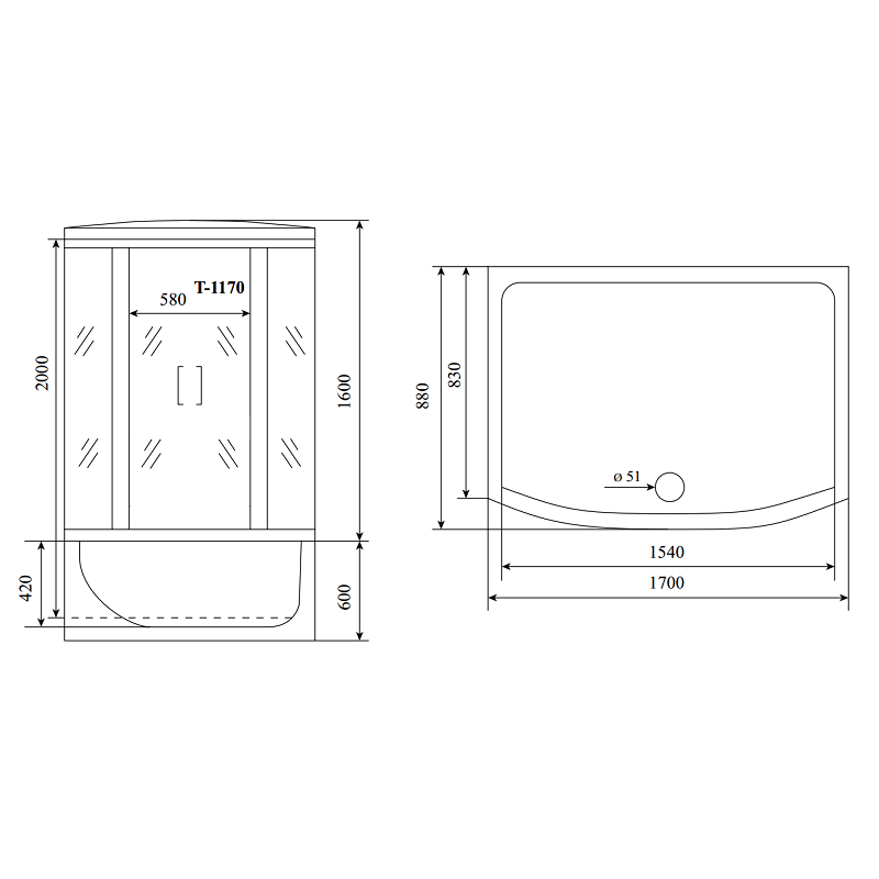 Комплектация: акриловая ванна высотой 55см со съемным экраном; сливная система clik-clak по центру ванны; крыша; верхний душ (тропический ливень); алюминиевый профиль; закаленное стекло толщиной; двойные металлические ролики; откидное сиденье; подголовник; сенсорный пульт нового поколения; FM-радио; верхняя и боковая подсветка; вентиляция; декоративная боковая подсветка; встроенный однорычажный смеситель 4-х режимный; ручная лейка с гибким шлангом на стойке; гидромассаж спины 6 джет; гидромассаж ступней; стеклянная полочка; диспенсер-дозатор для геля и шампуня; задние стенки глухая черная тонировка; двери серая тонировка.