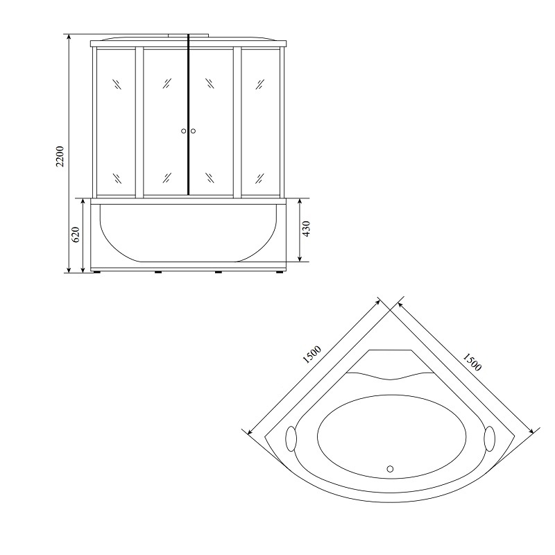 Комплектация: акриловый поддон со съемным экраном и сливной системой clik-clak; крыша; алюминиевый профиль; закаленное стекло; двойные металлические ролики; встроенное в поддон сиденье; подголовник; сенсорный пульт; FM-радио; верхний свет; декоративная боковая подсветка; вентиляция; смеситель однорычажный 4-х режимный; ручная лейка с гибким шлангом на стойке; гидромассаж спины 6 джет; гидромассаж ступней; стеклянная полочка; диспенсер-дозатор для геля и шампуня; задние стенки усиленный армировкой, белоснежный акрил; двери прозрачное, каленое стекло.