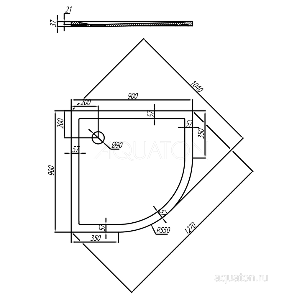 Душевой поддон Aquaton Калифорния четверть круга 90x90 белый - цена 14440 руб. Оформить заказ и купить душевой поддон Aquaton Калифорния четверть круга 90x90 белый в Москве в нашем интернет магазине можно по тел 8 (919) 991-95-00 или добавив товар в корзину.