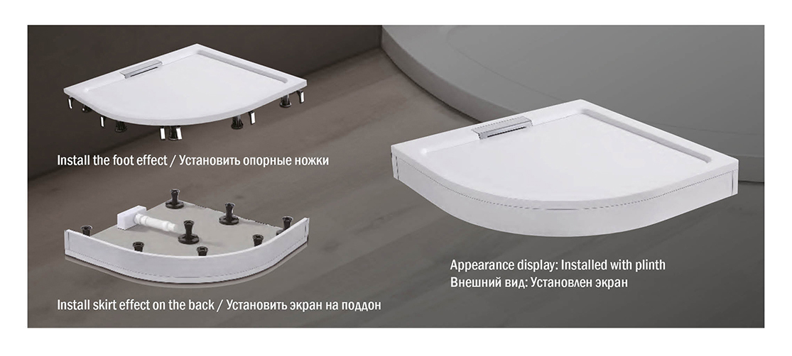 • Поддон при установке на подиум требует усиления центральной части. Можно использовать ножки (продаются отдельно) или любую другую опору