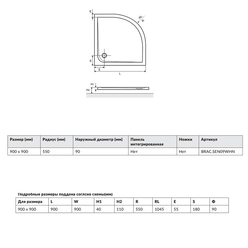 Душевой поддон акриловый Excellent Sense четверть круга 90x90 белый - цена 23835 руб. Оформить заказ и купить душевой поддон Excellent Sense четверть круга 90x90 белый в Москве в нашем интернет магазине можно по тел 8 (919) 991-95-00 или добавив товар в корзину.