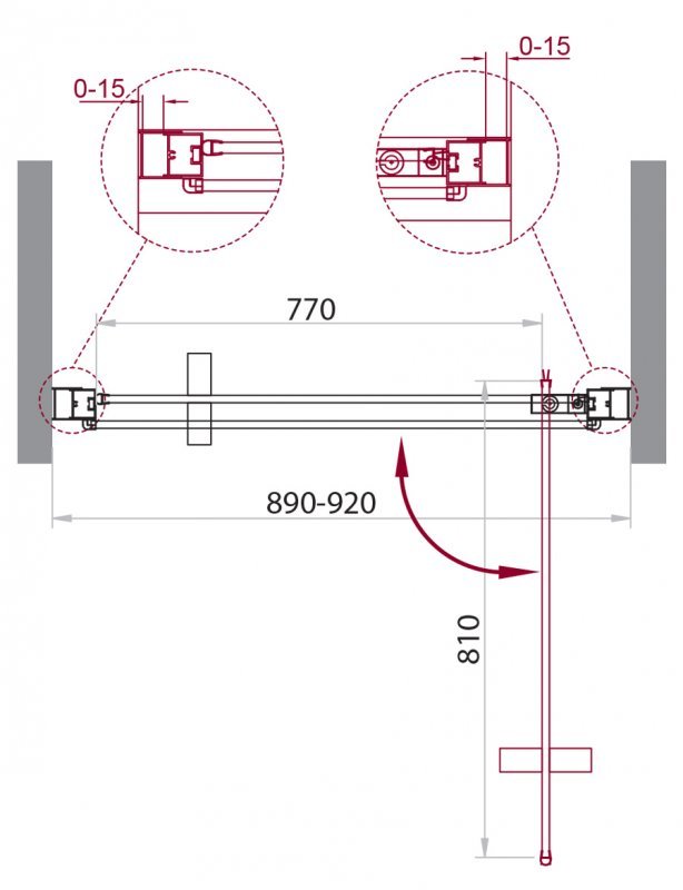Дверь в проем (нишу) с одной распашной секцией • Ориентация: универсальная • Материал полотна двери: закаленное стекло • Новый тип цилиндрической петли для распашных дверей, позволяет добиться максимальной ширины входа в открытом состоянии. Петля исключает скопление грязи и бактерий в труднодоступных местах, обеспечивает лёгкий уход за изделием • Регулируемый пристенный профиль, позволяет без проблем установить изделие даже при кривизне стен • Поддон приобретается отдельно