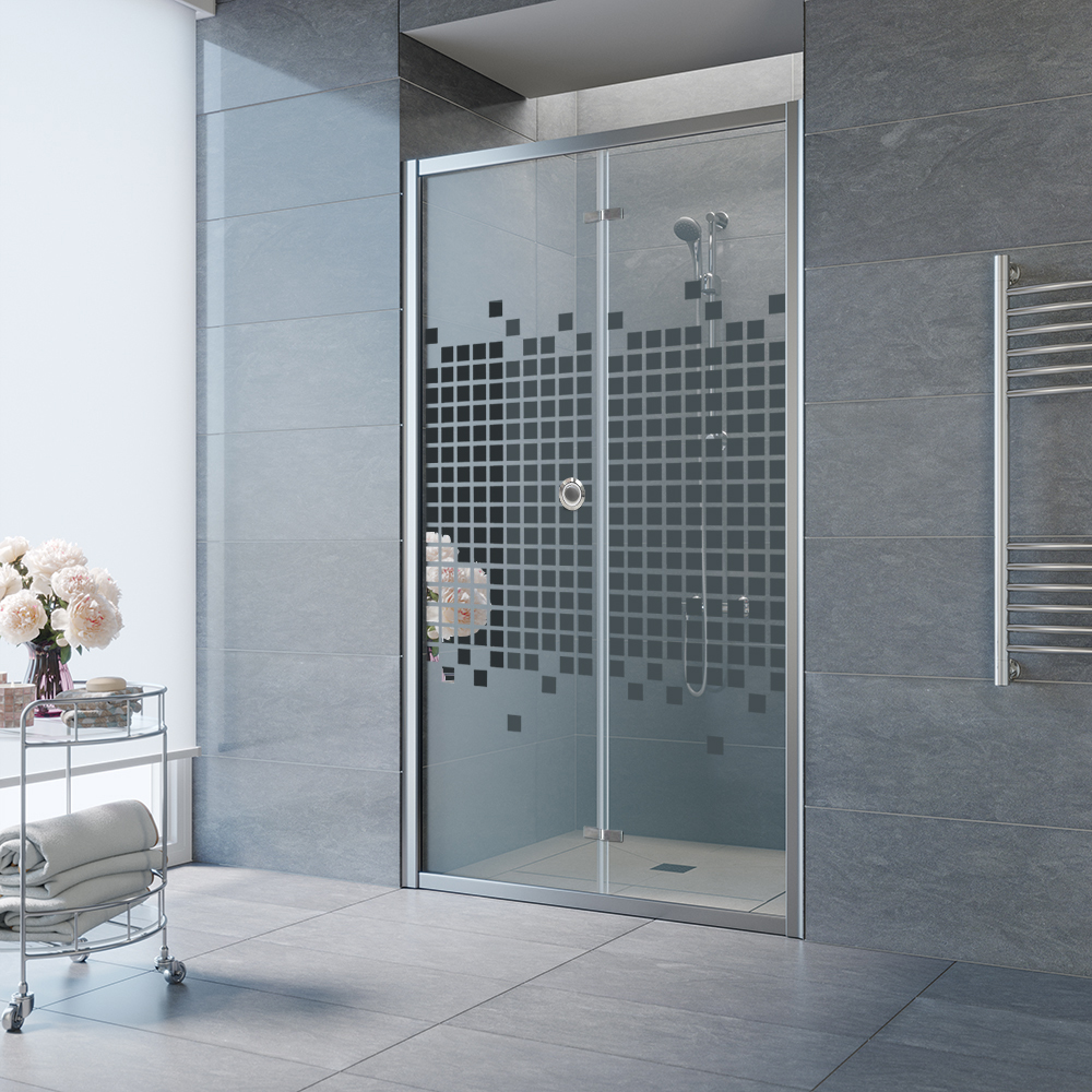 Душевая дверь в нишу Ceruttispa D91 Размер: 90x195 см Душевая дверь из прозрачного закаленного стекла (5 мм) с дизайнерским двусторонним зеркальным рисунком - "Mosaico". Полотно устойчиво к случайным ударам. Алюминиевый полированный хромированный профиль Cromato не деформируется при высокой влажности и смене температуры. Петли и ручки Acciaio puro выполнены из чистой стали, устойчивы к образованию коррозии. Душевая дверь крепится к стене, подходит для установки на правую или левую сторону. Дверь-гармошка их 2-х частей складывается во внутрь душевой зоны и образует широкий вход. 1 витрина = 4 вида товара на продажу Достоинства душевой двери: Защищает ванную комнату от брызг воды. Пол возле душевой зоны остается сухим, что снижает шансы поскользнуться после водных процедур. Душевая дверь помогает зонировать помещение на отдельные функциональные участки. Особенно это актуально для совмещенного санузла и небольших ванных комнат. Двери из стекла практичны, долговечны и гигиеничны. На стеклянной поверхности не скапливаются бактерии и грязь, полотно легко чистить. Дизайн двери дополнит стилистическую задумку оформления ванной. При правильном уходе душевая дверь долгие годы сохраняет эстетический внешний вид. Для чистки необходимо использовать мягкие губки и салфетки, специальные жидкие чистящие средства. Нельзя использовать жесткие губки и абразивные порошки, которые оставляют мелкие царапины. Как результат, в них скапливается грязь и размножаются бактерии. Поэтому важно правильно чистить стеклянные поверхности.