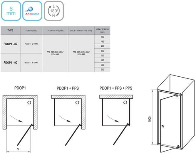 Чешская распашные душевая дверь в нишу Ravak PDOP1 90 блестящий + стекло Транспарент - цена 68970 руб. Оформить заказ и купить душевую дверь Ravak PDOP1 90 блестящий + стекло Транспарент в Москве в нашем интернет магазине можно по тел 8 (919) 991-95-00 или добавив товар в корзину.