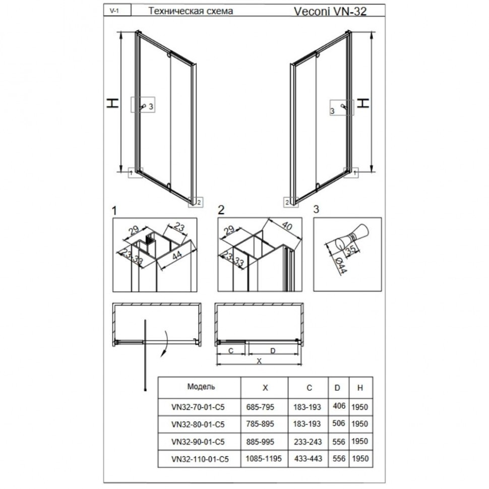 Душевая дверь Veconi Vianno VN-32 195x80 - VN32-80-01-C5