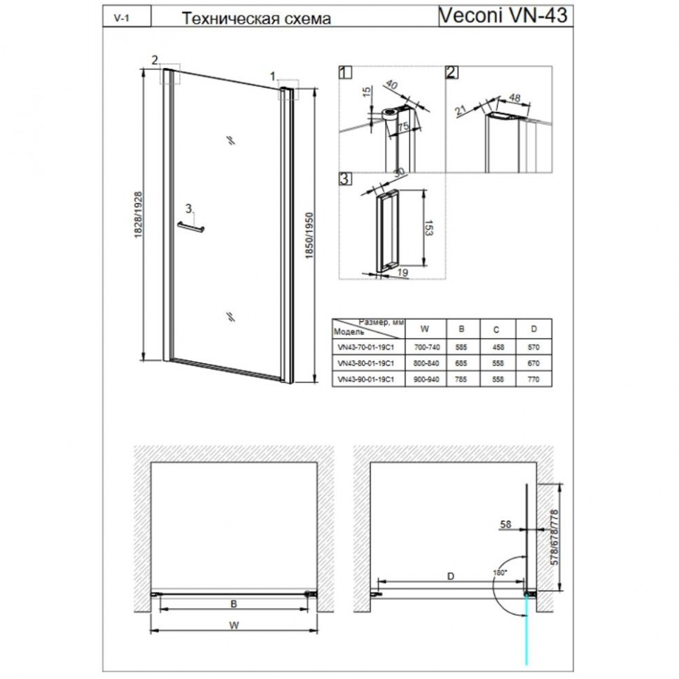 Душевая дверь Veconi Vianno VN-43 195x70 - VN43-70-01-19C1