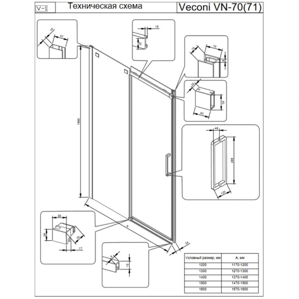 Душевая дверь Veconi Vianno VN-70 195x150 - VN70-150-01-19C4