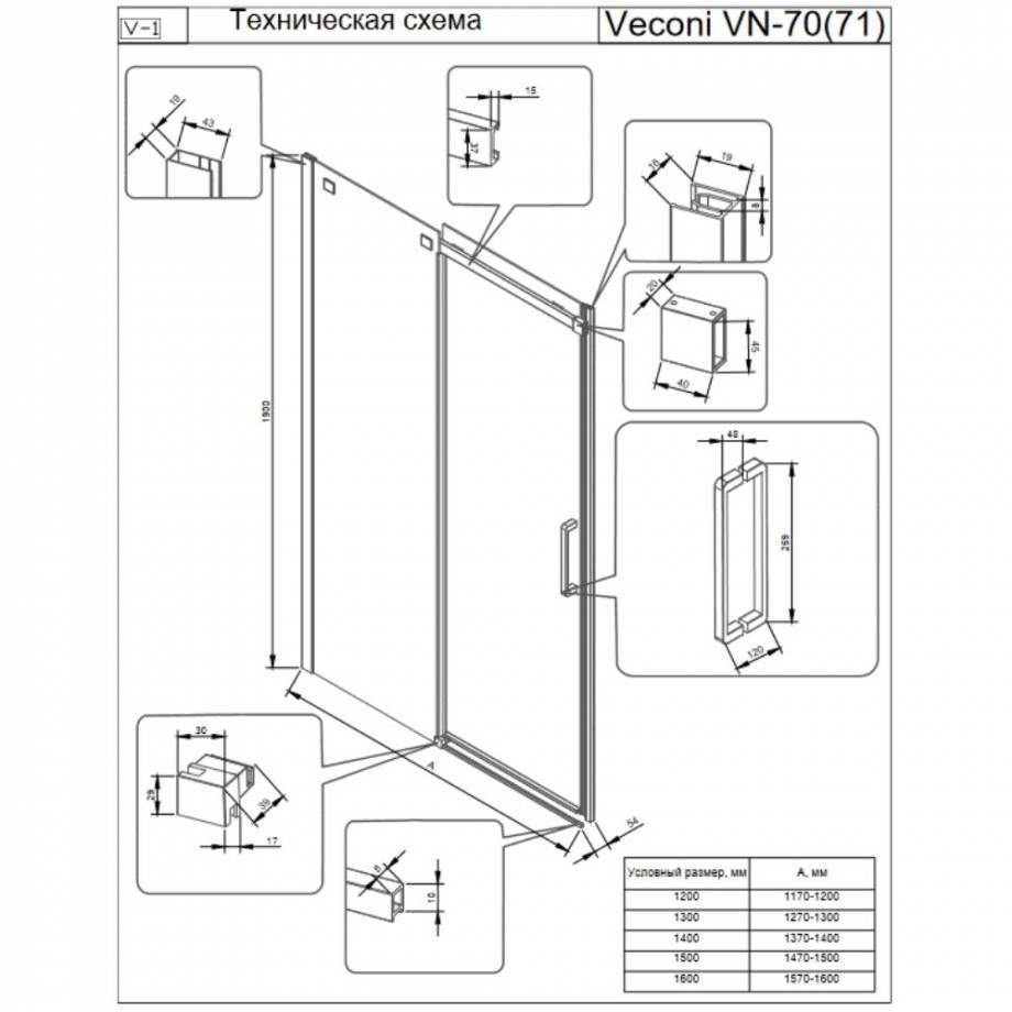 Душевая дверь Veconi Vianno VN-71 195x160 - VN71-160-01-19C4