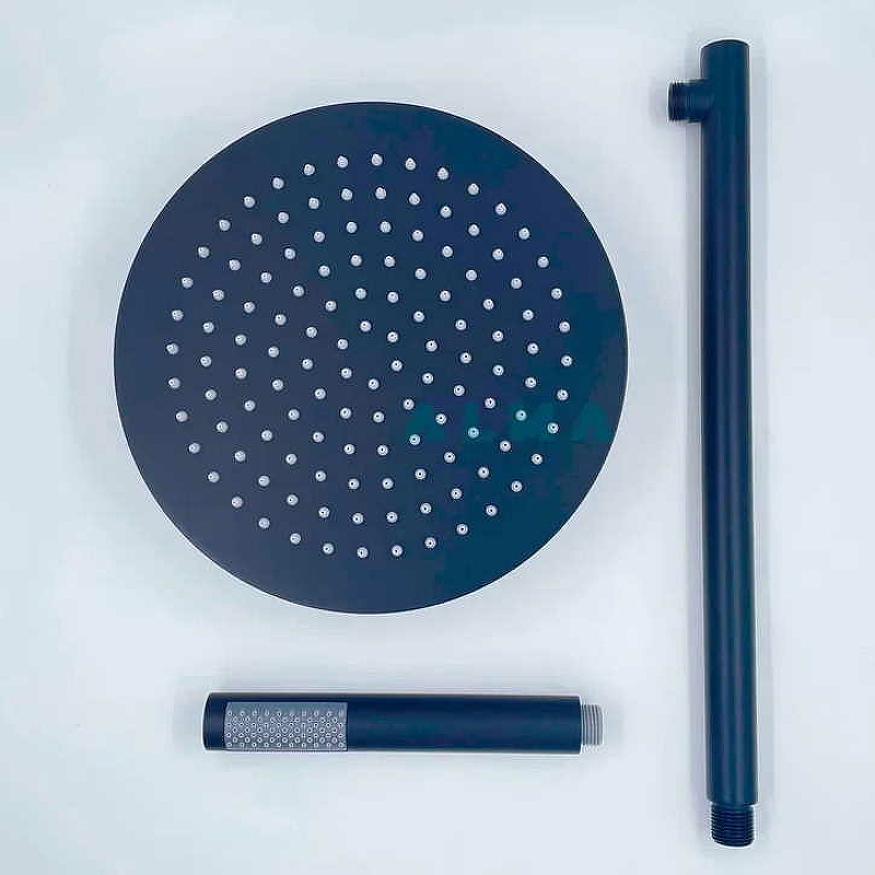 Верхняя лейка размер 25 см. Длина верхнего кронштейна 40 см. Шланг 150 см. Лейка ручная нержавеющая сталь. Встраиваемый смеситель латунь глубина его погружения в стену 8 см.