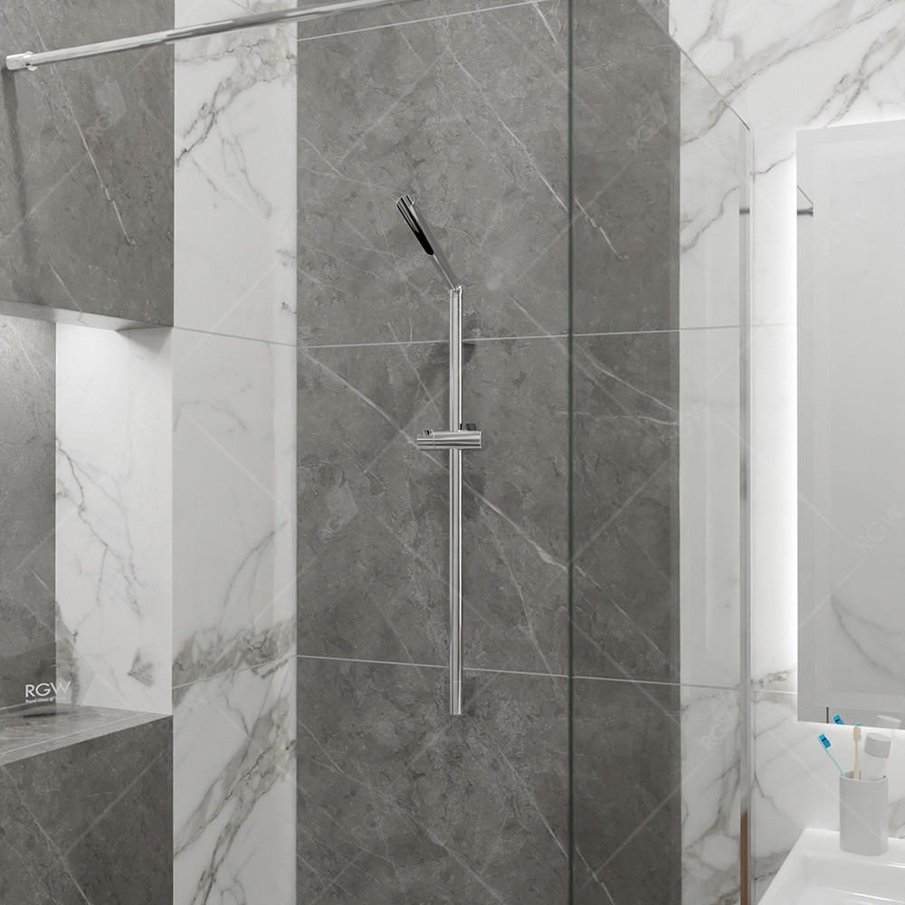 Душевая стойка с регулируемым по высоте держателем ручного душа. Поворотная верхняя часть держателя ручного душа