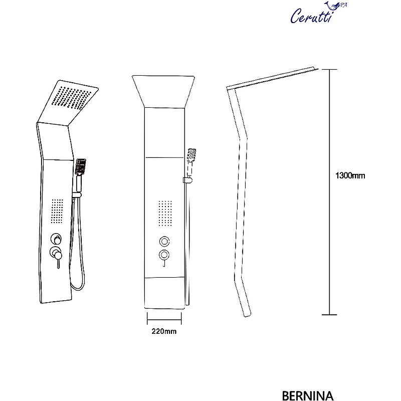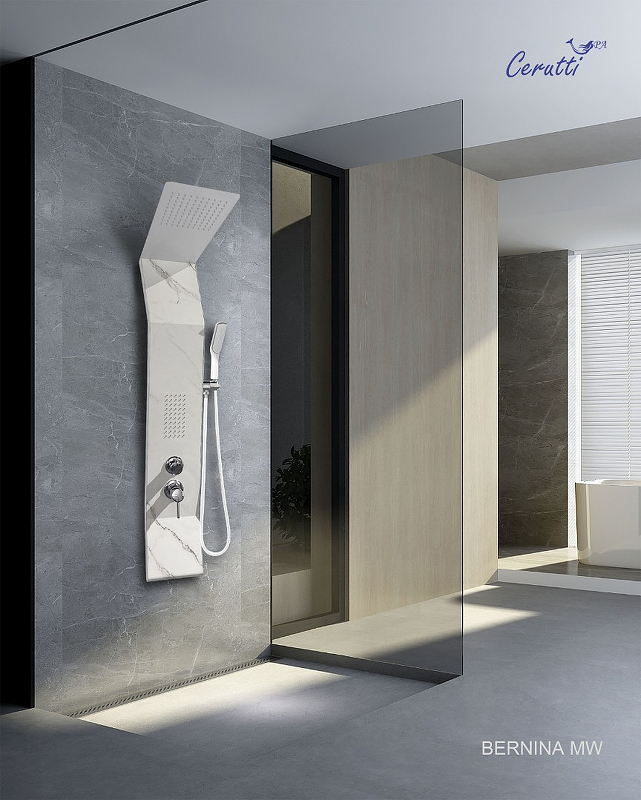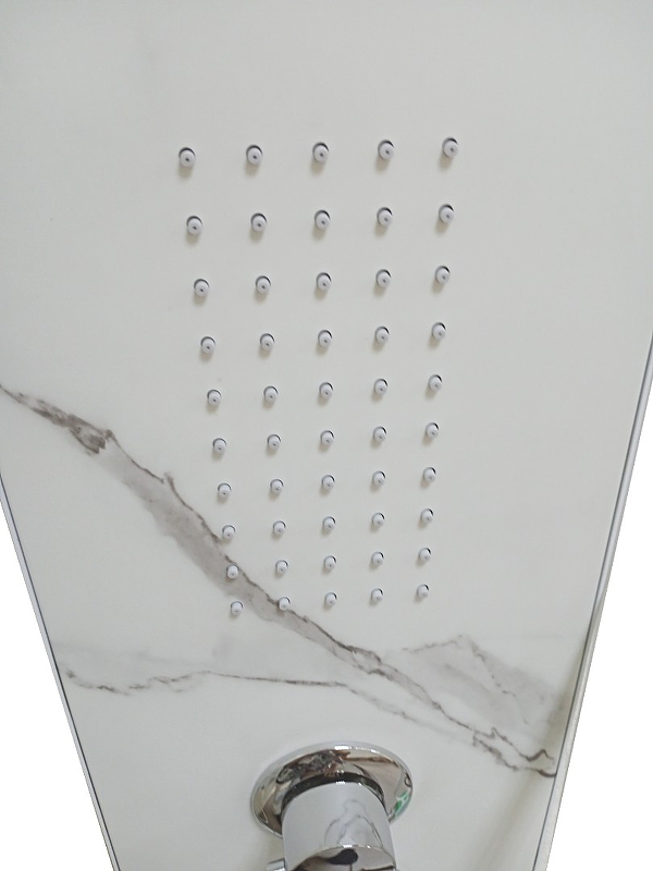 В наборе: душевая панель, душевая лейка, смеситель, шланг для душа, верхний душ, крепеж, инструкция.