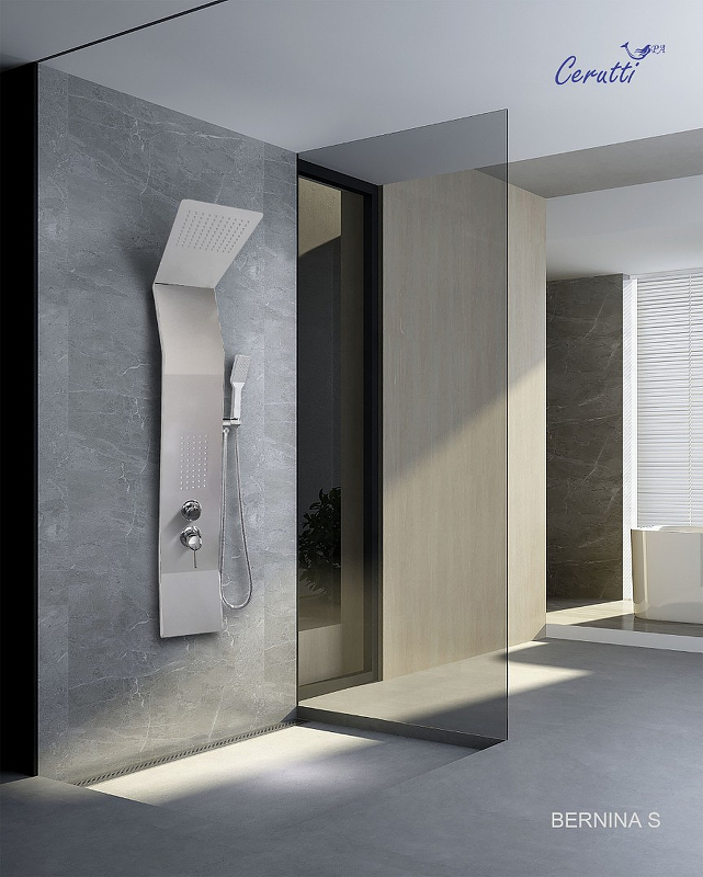 В наборе: душевая панель, душевая лейка, смеситель, шланг для душа, верхний душ, крепеж, инструкция .