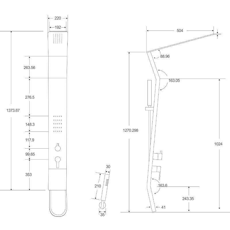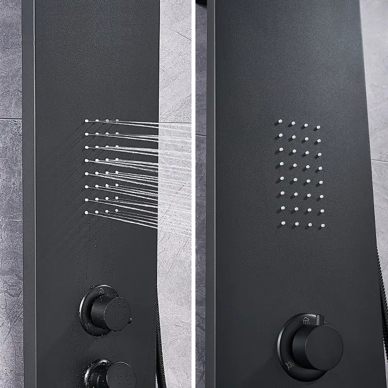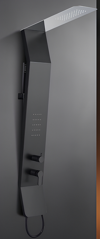 В наборе: душевая панель, душевая лейка, смеситель, шланг для душа, верхний душ, крепеж, инструкция.