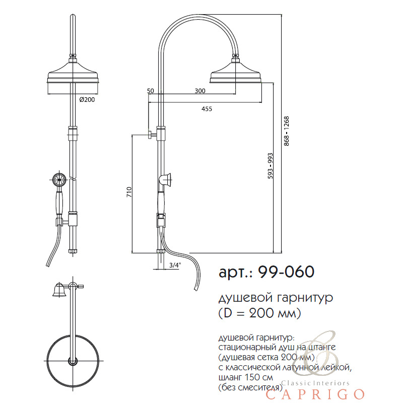 Душевая система Caprigo 99-060-oro золото без дайвотера - цена 95018 руб. Оформить заказ и купить душевой гарнитур Caprigo 99-060-oro золото без дайвотера в Москве в нашем интернет магазине можно по тел 8 (919) 991-95-00 или добавив товар в корзину.