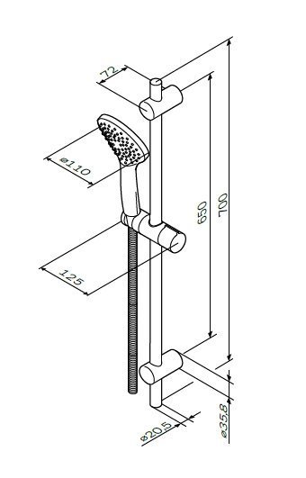 • Держатель ручного душа: регулируемый в трех плоскостях.